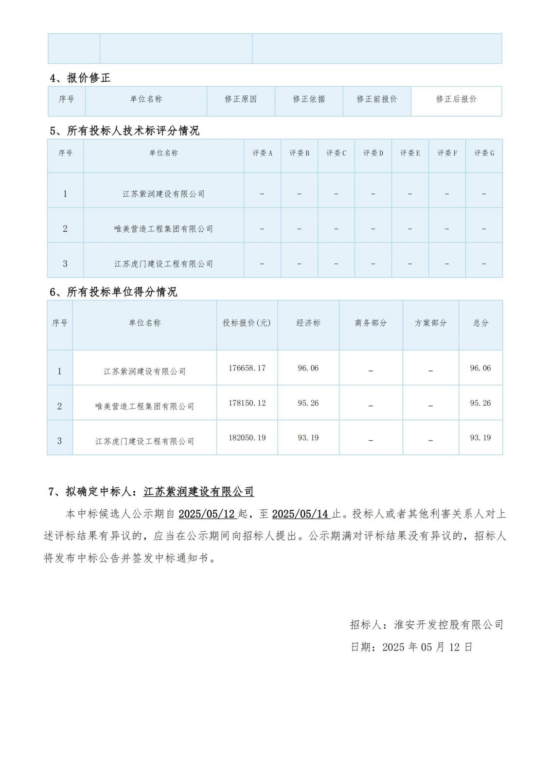 淮安開(kāi)發(fā)控股有限公司東城江南和園1區1號會(huì )所消防改造工程 評標結果公示