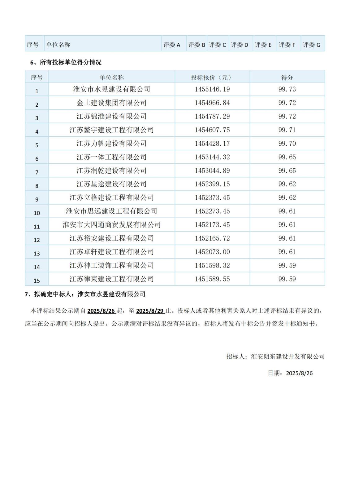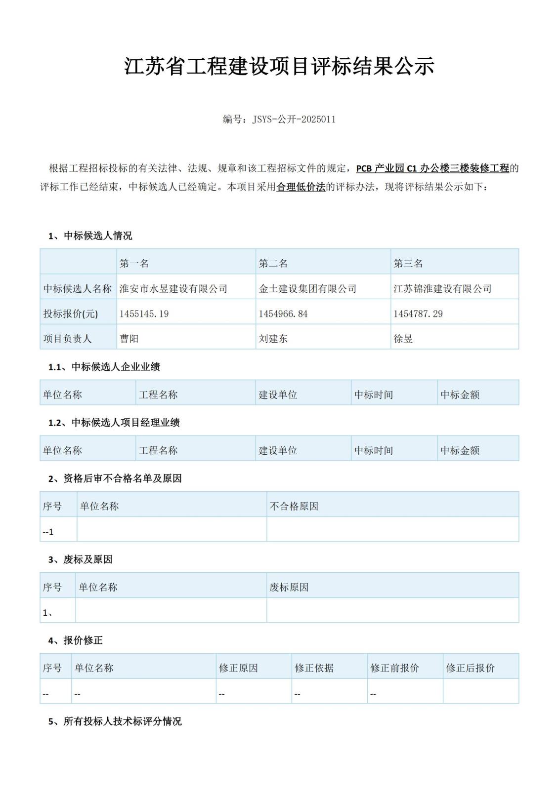 江蘇省工程建設項目評標結果公示